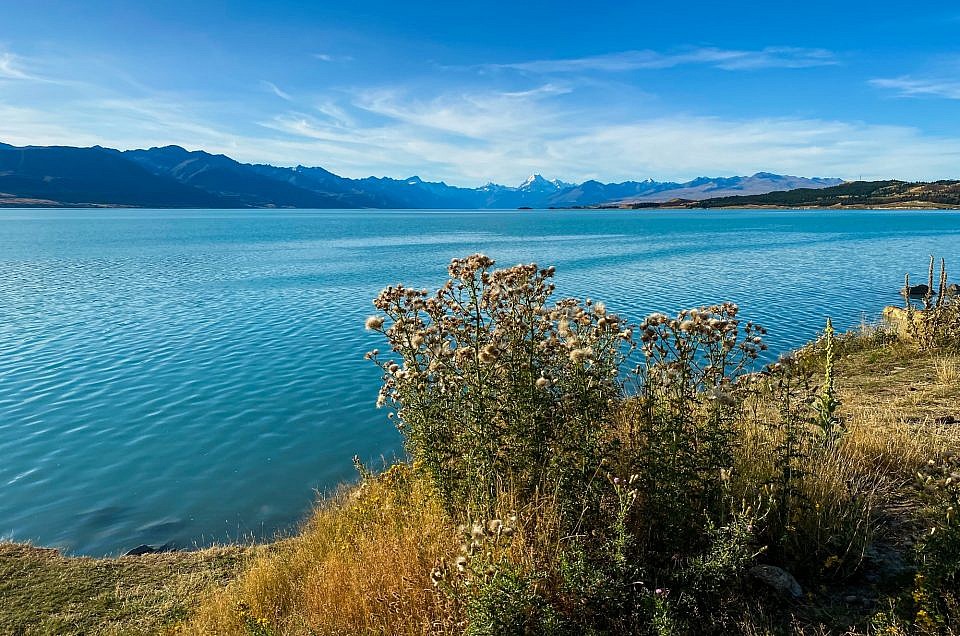 Lake Pukaki is a shimmering blue jewel set into a grand alpine playground – an iconic New Zealand landscape of high mountain peaks, glacier fed alpine lakes and golden tussocks stretched beneath an endless sky.